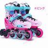 当社のインラインスケートはS(18.5-20.5cm)、 M(21-23cm)、 L(23.5-25.5cm) 三種類のサイズで、お子様でも楽々のプッシュボタンで簡単サイズ調整可能なフレーム 子供の成長に合わせてサイズ調整ができるので、足にもしっかりフィットし、長く使えるのでとてもです。成長期の子供に最適!